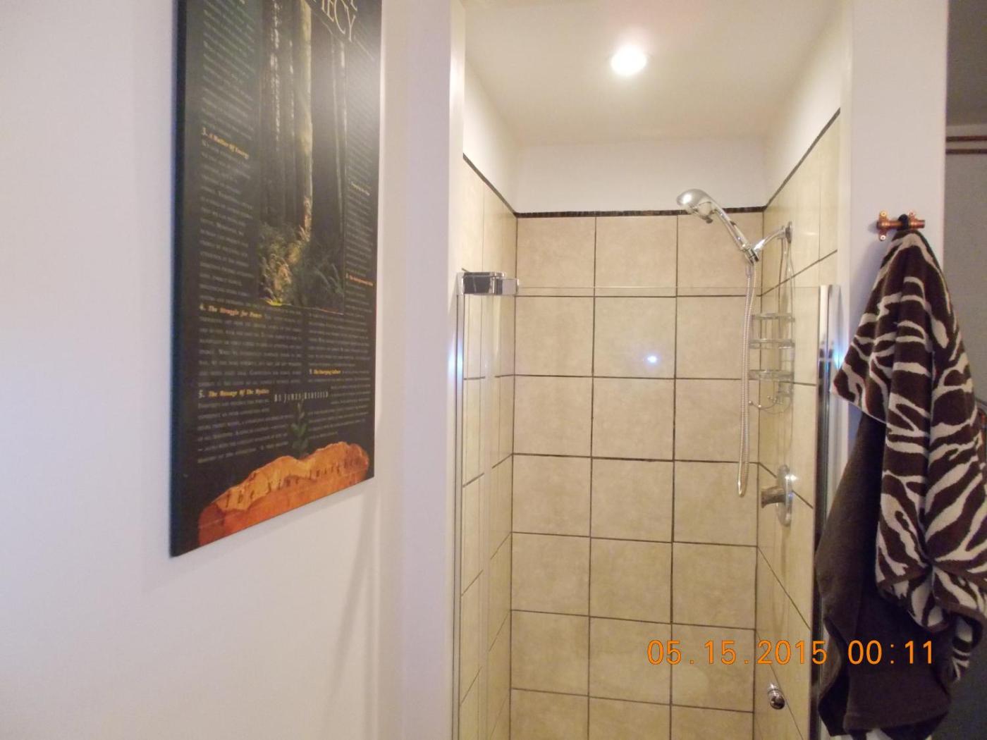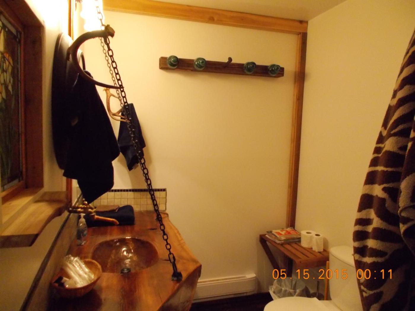Chalens Chalet. This twindouble room features a balcony, barbecue and microwave. A private bathroom feature 3X4 foot tiled shower, a hand carved cedar bathroom sink, wooden counter tops, and tiled back splash. ;