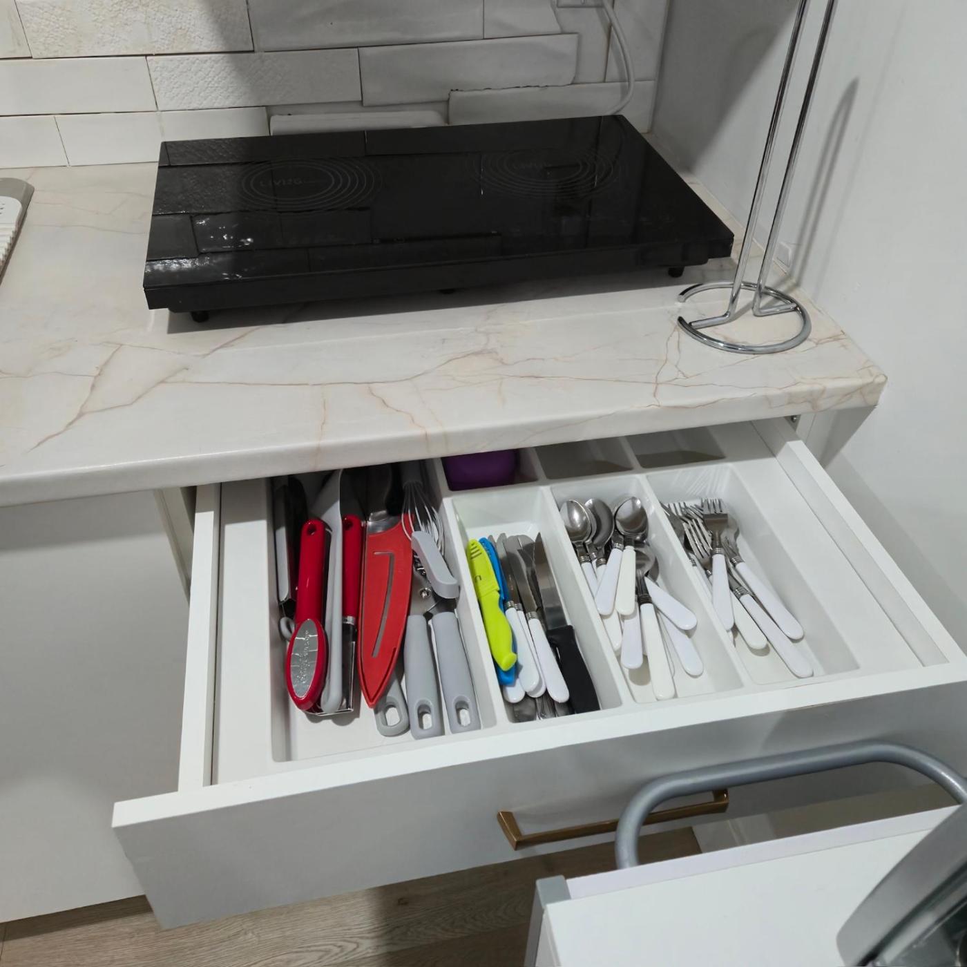 One-Bedroom House. Boasting a private entrance, this air-conditioned holiday home includes 1 living room, 1 separate bedroom and 1 bathroom with a walk-in shower and a bath. In the well-fitted kitchen, guests will find a stovetop, a refrigerator, kitchenware and a microwave. The spacious holiday home offers a washing machine, a tea and coffee maker, a seating area, a wardrobe, as well as a flat-screen TV with streaming services. The unit has 2 beds.