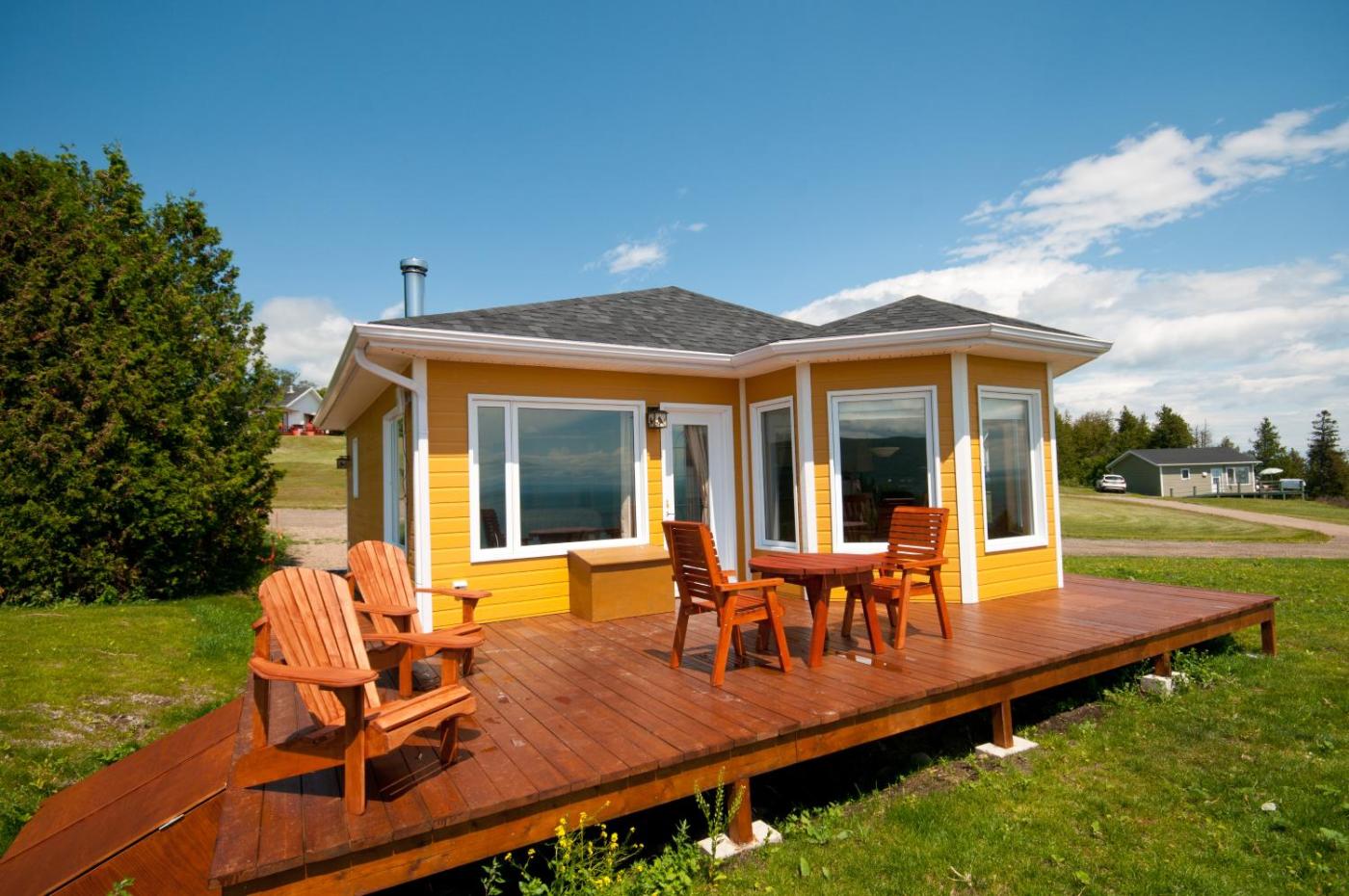 One-Bedroom Chalet. This chalet features a fireplace. Boasting a private entrance, this chalet features 1 living room, 1 separate bedroom and 1 bathroom with a bath and a shower. Guests can make meals in the kitchen that has a stovetop, a refrigerator, kitchenware and an oven. Featuring a balcony with sea views, this chalet also features a coffee machine and a flat-screen TV with cable channels. The unit has 2 beds. ;