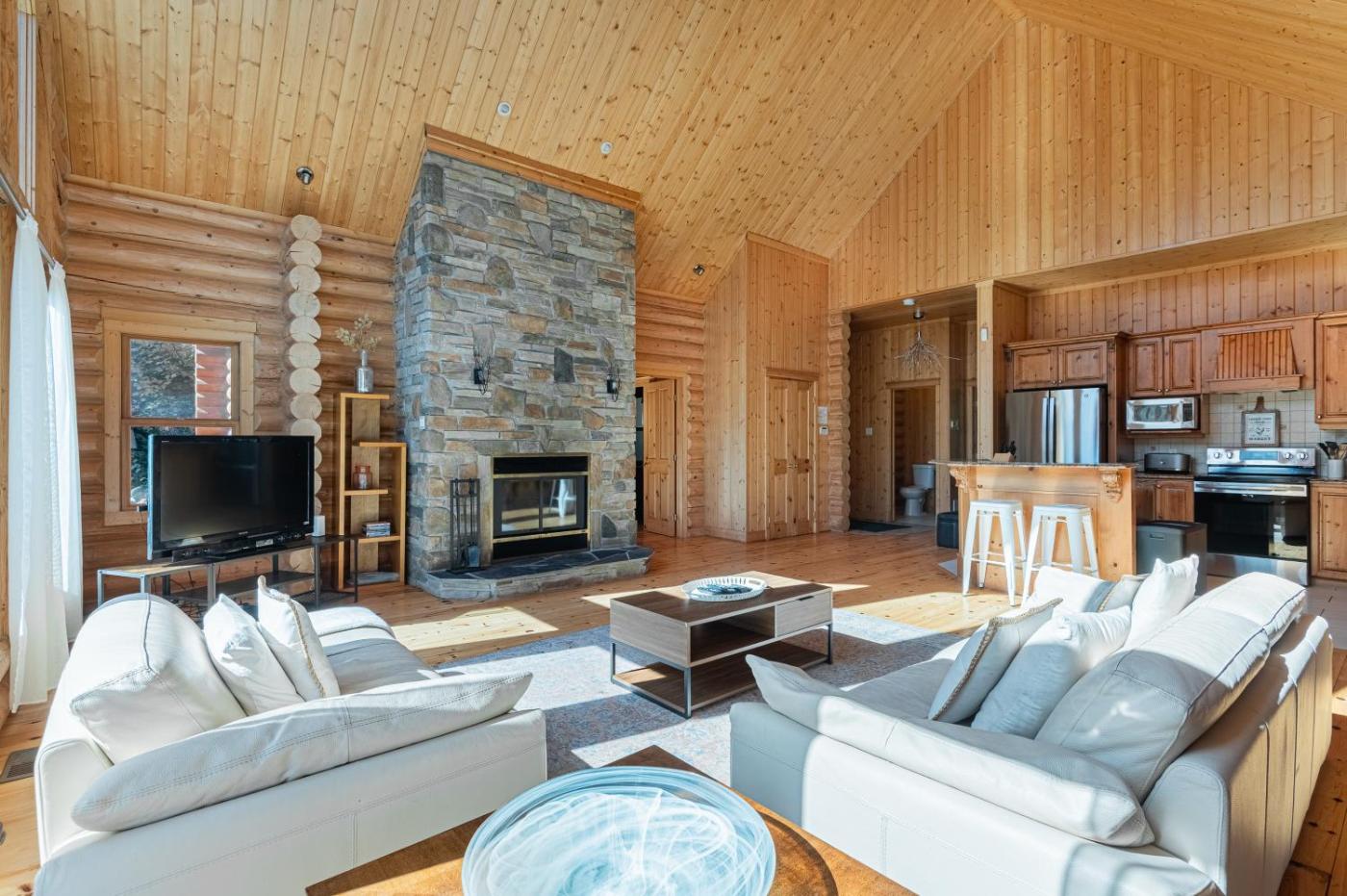 Chalet. This chalets special feature is the fireplace. The chalet features 4 bedrooms, 3 bathrooms and a kitchen. The chalets kitchen, which has kitchenware, is available for cooking and storing food. This chalet provides a flat-screen TV. The unit offers 7 beds.