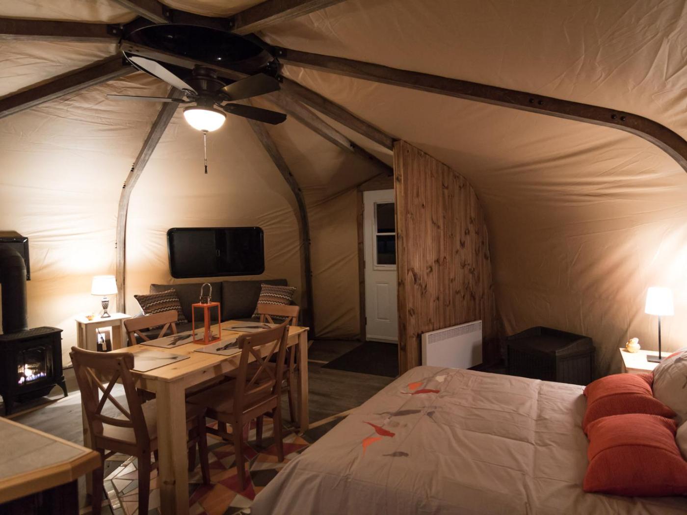 Chalets Lanaudière - Yourtes features wellness packages and free private parking, and is within 25 km of Regional Park Chutes-Monte-a-Peine et des Dalles and 20 km of Club de Golf Montcalm. This chalet offers barbecue facilities. Outdoor seating is also available at the chalet.